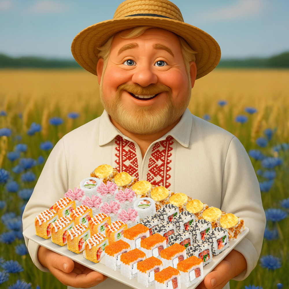Калі душа просіць свята, а пыска — ролаў і паболей! Склад: Лава сяке, Запечаны з смажаным ласосем, Ласось з аранжавай тобіка, Сяке хот, Яркі ласось