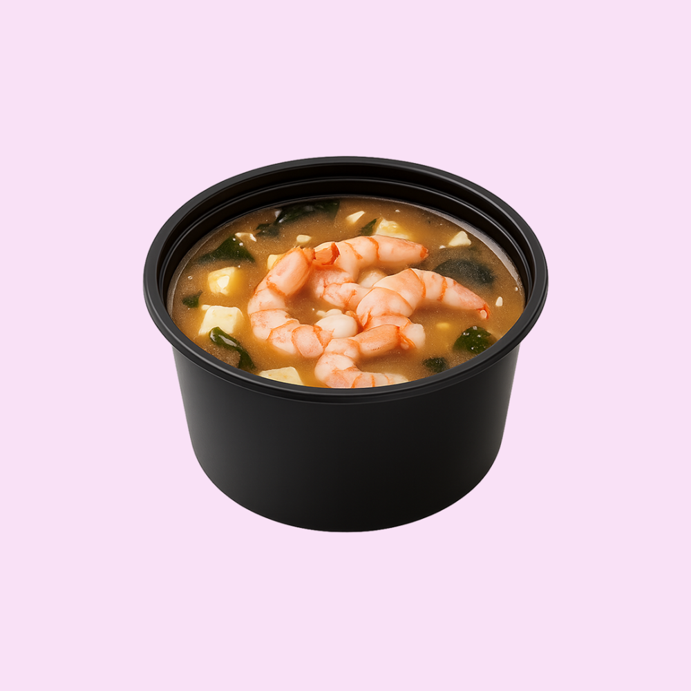 Мисо паста, соевый соус, вакаме, сыр тофу, креветка, лук зелёный